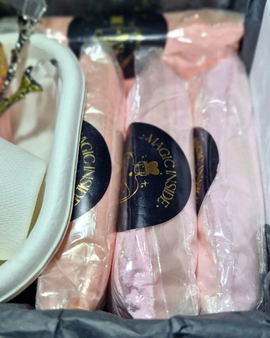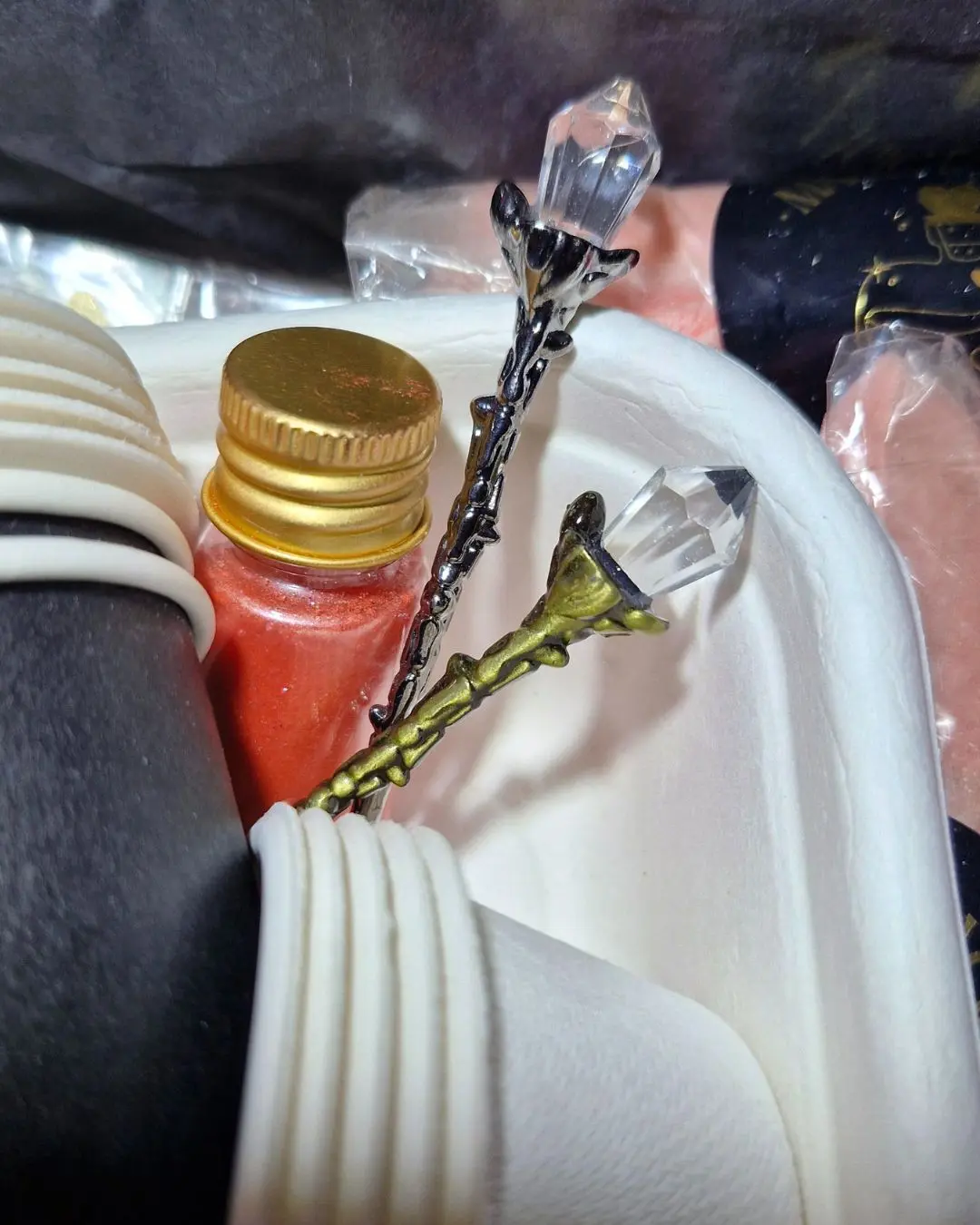 - Packaged in a beautiful Sparkle & Spell Co. box with black tissue and red and gold flecked ribbon