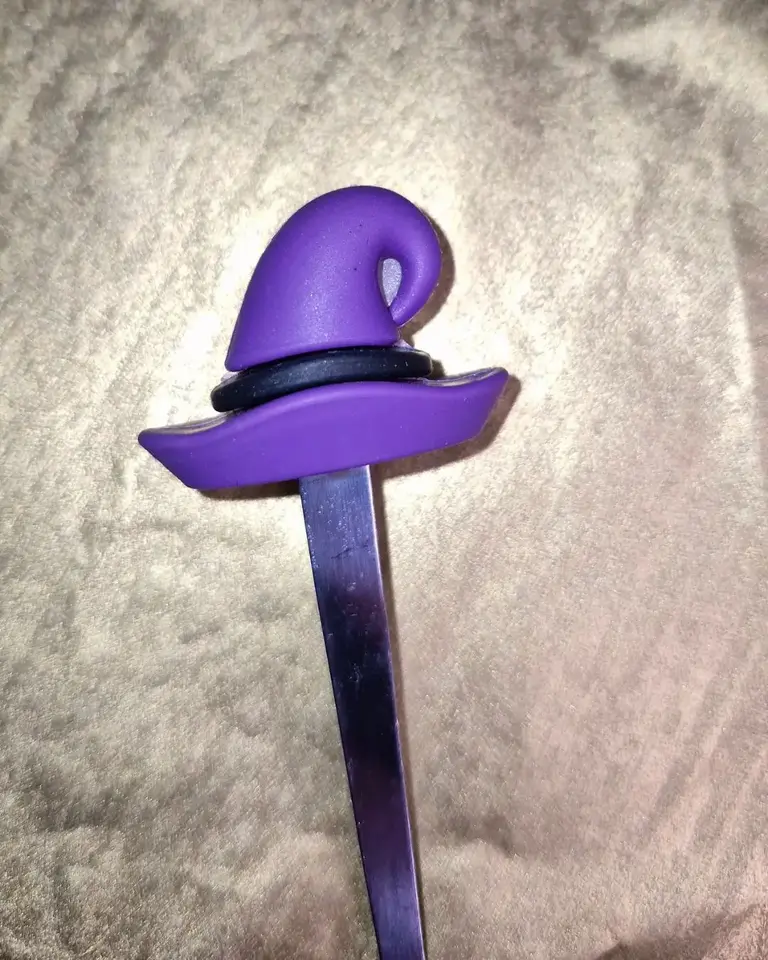 - Colour's: Gold or Silver with Purple Witches Hat, Orange Pumpkin, Black Bat and Black Skull tops.