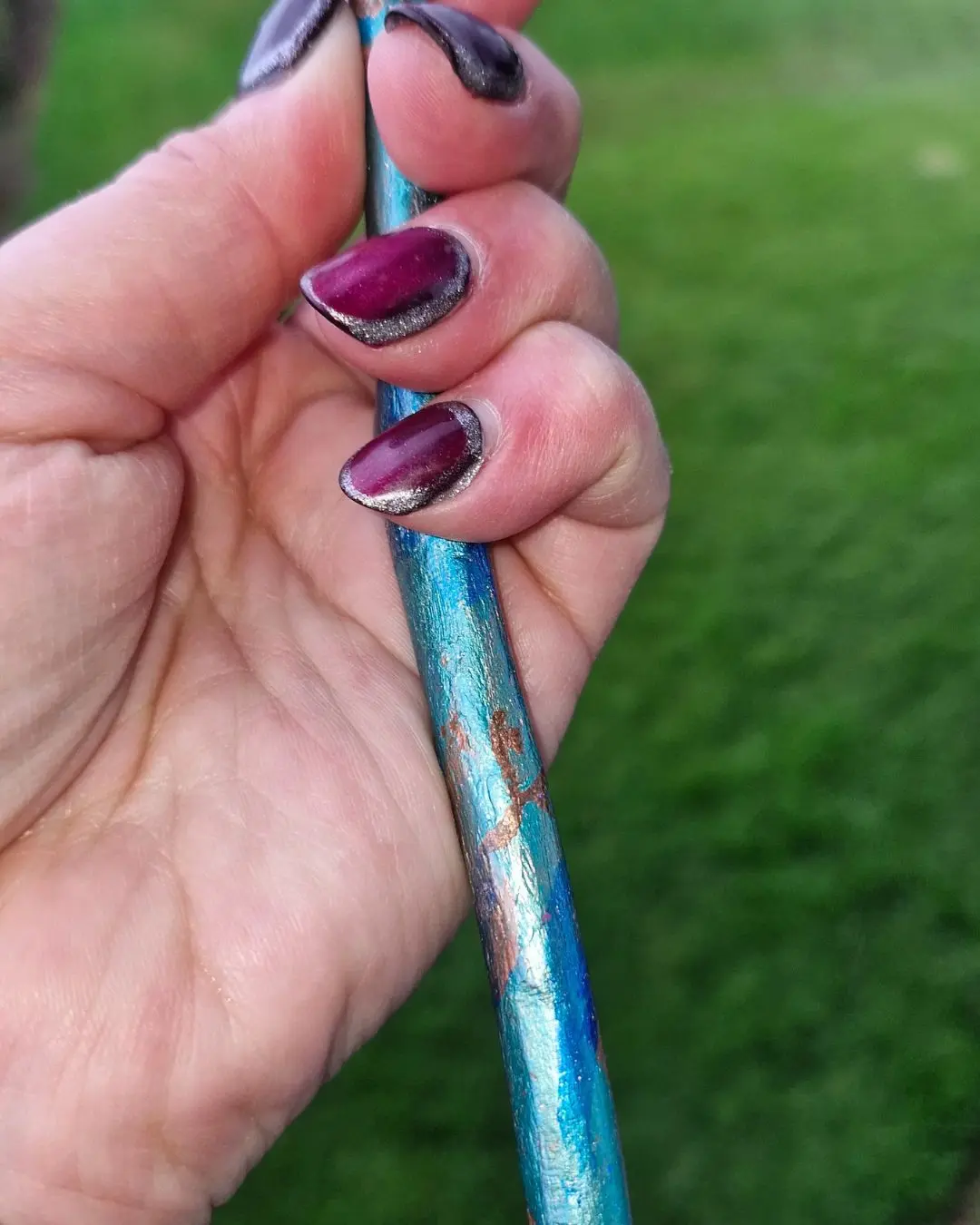 - A colour-shifting shaft with flickers of pink, purple, and gold — almost alive with enchantment