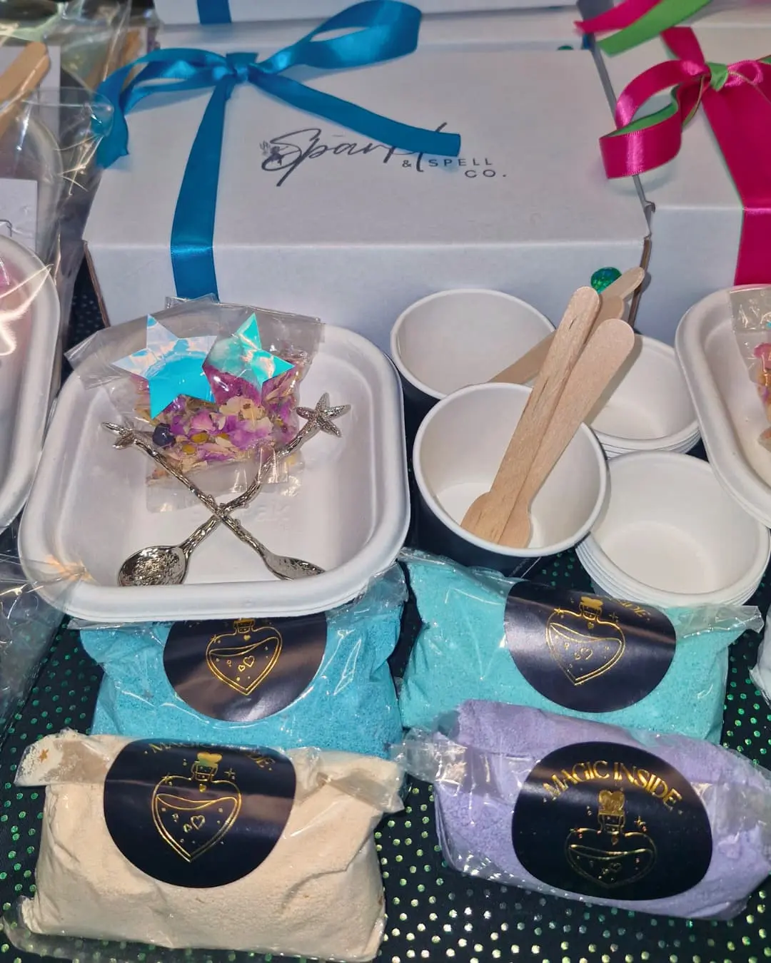 - Packaged in a beautiful Sparkle & Spell Co. box with blue tissue paper & ribbon