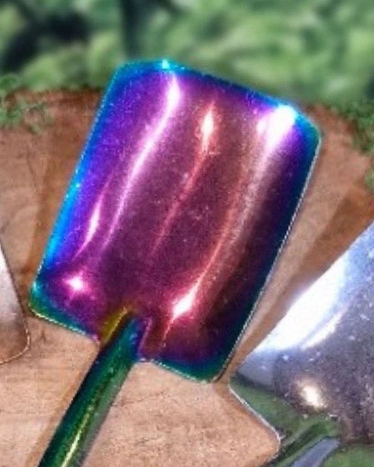 • Smooth metal spoon with oil slick shine